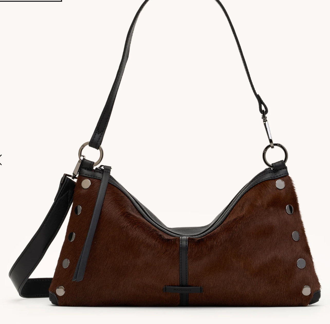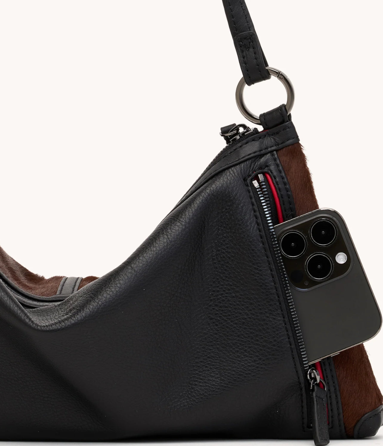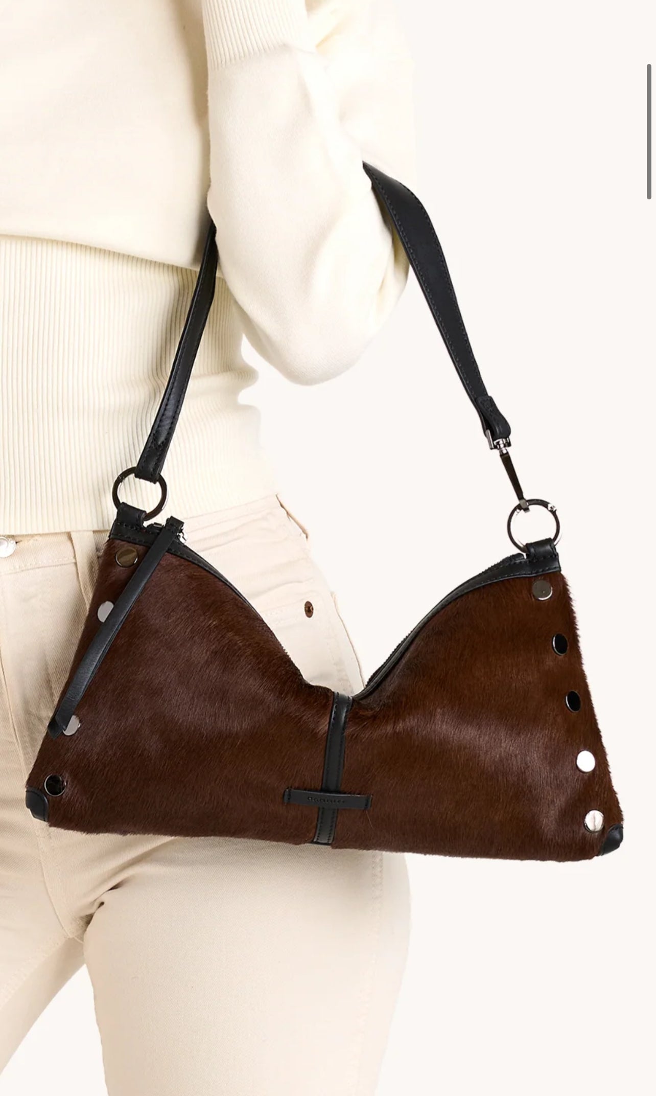 The Kyle Medium in the Calf Hair and Gunmetal combo is just too good. Plenty of space in this bag all while being the perfect little shoulder soldier, also comes with the cross body strap.