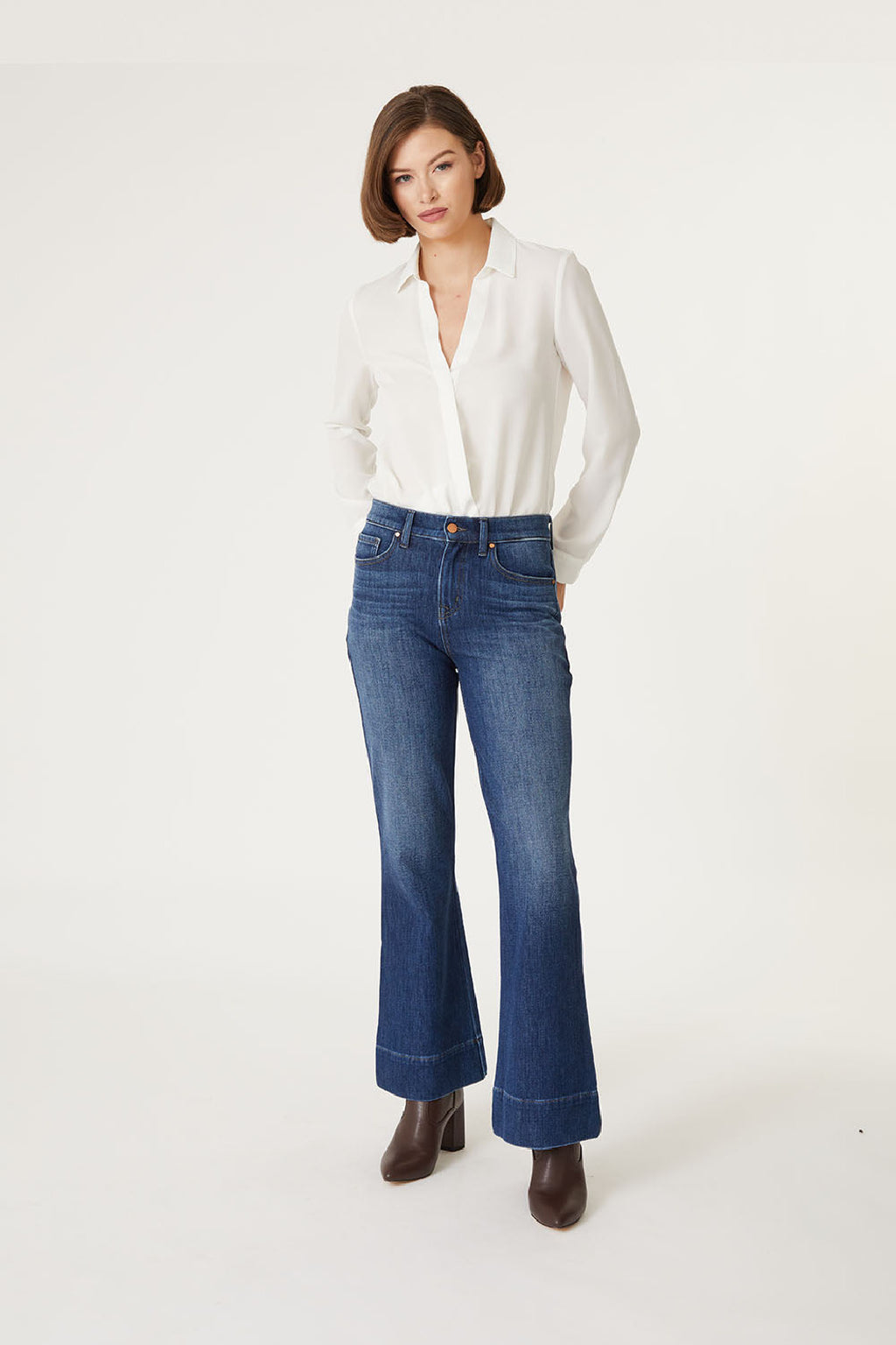 Camille Exposed Button Fly Wide Leg - Light Blue