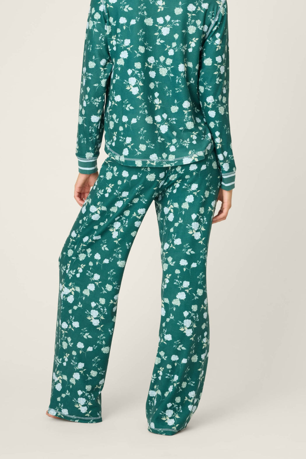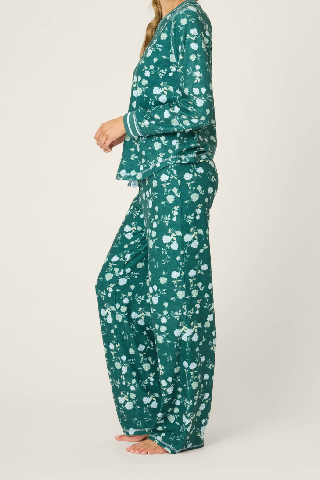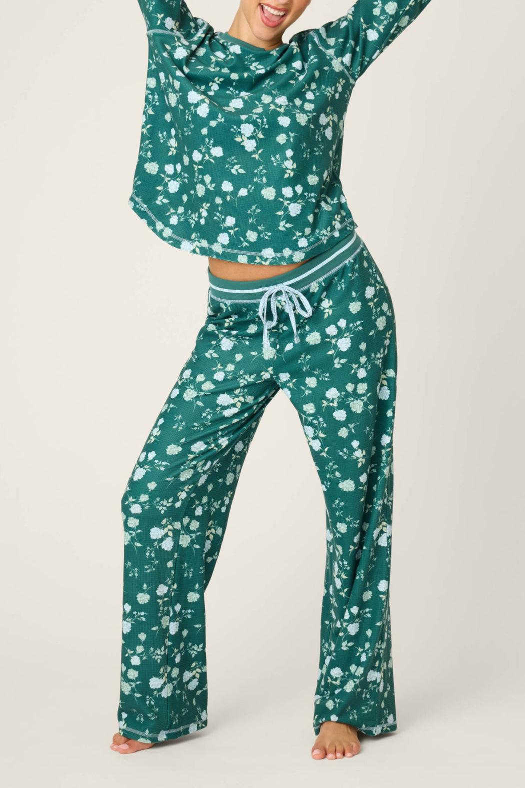 DESCRIPTION: The freshest wintergreen floral print adds charm and comfort to this lounge pant. Featuring a drawstring waist, a striped band, and a relaxed fit, this PJ piece is made for cozying up all season long. Pair with the matching lounge top for the best look!