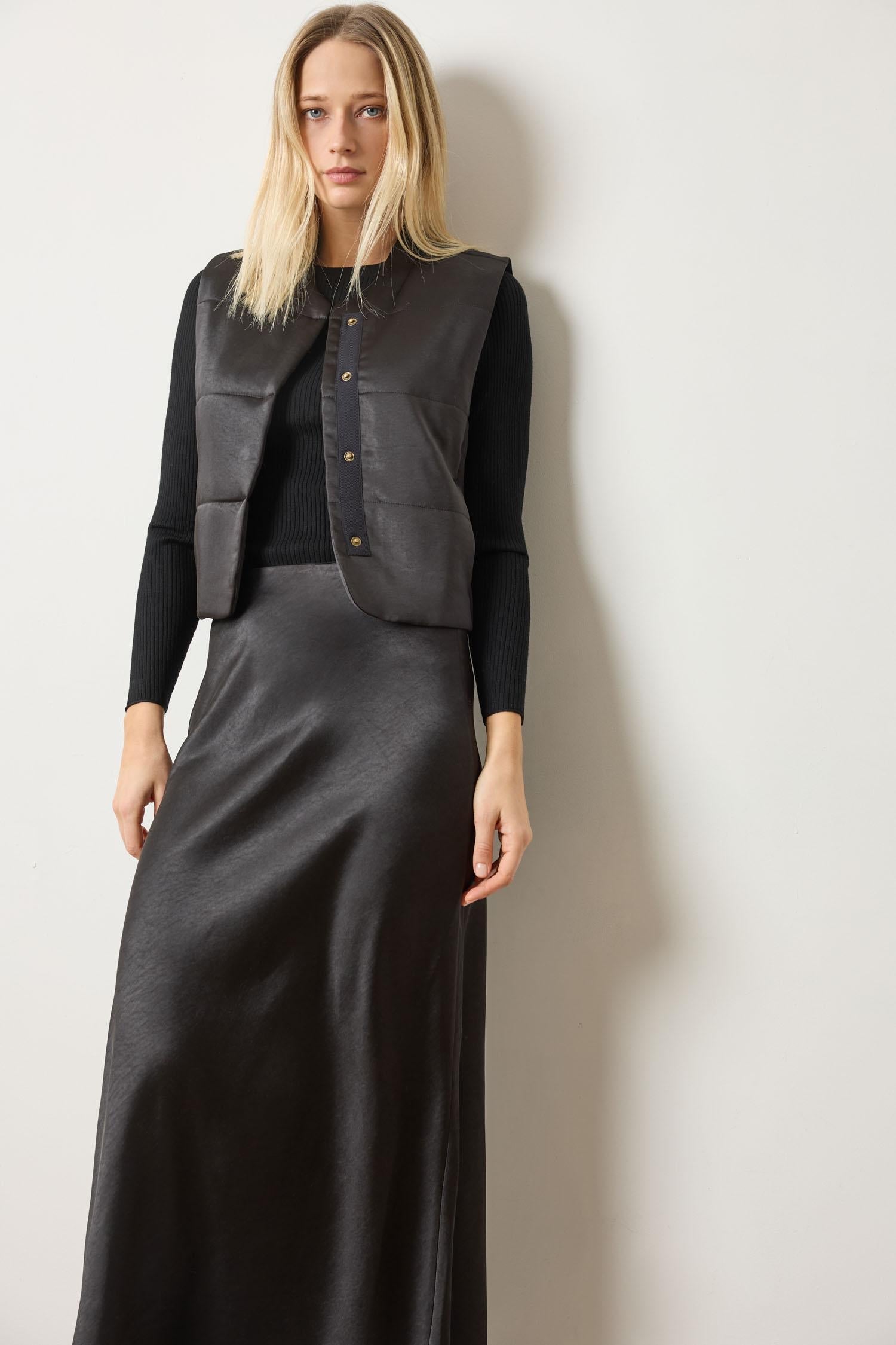 Satin Quilted Vest - Black